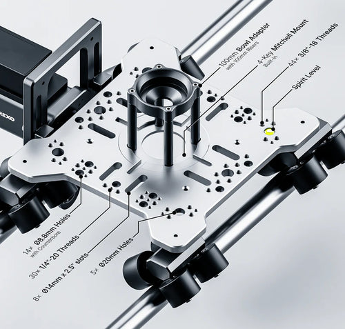 Lift Modülü takılıyken Slide Kit, dikey ya da eğimli kurulumlarda kontrollü ve sağlam bir performans verir. Yük altında bile hareketler akıcı ve tekrarlanabilir kalır; böylece temiz, sinematik geçişler elde edersiniz.