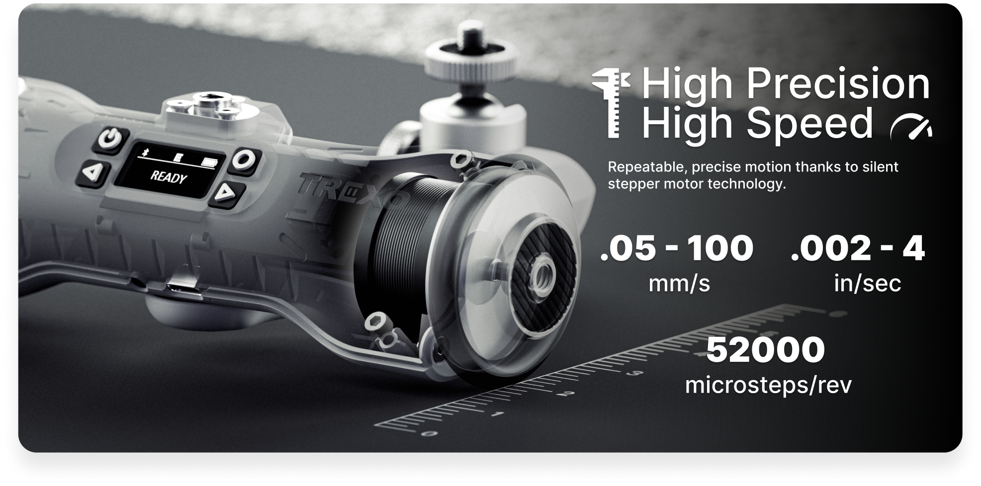 Cihaz üzerindeki arayüzü kullanarak modlar arasında geçiş yapabilir ve tüm hareket parametrelerini hassas şekilde ayarlayabilirsin.Mesafe, süre, yumuşatma eğrileri (easing curves) ve dairesel yarıçap gibi ayarları doğrudan cihaz üzerinden belirle, ardından hemen çekime başla.